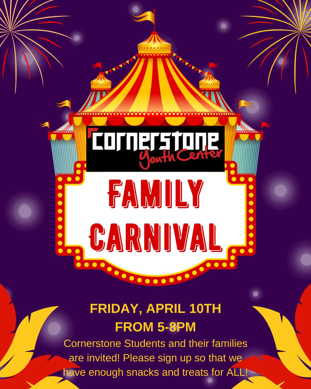 Drop in or stay the whole time! Either way our students and their families and friends are invited to our annual Family Carnival! Sign Up Here!